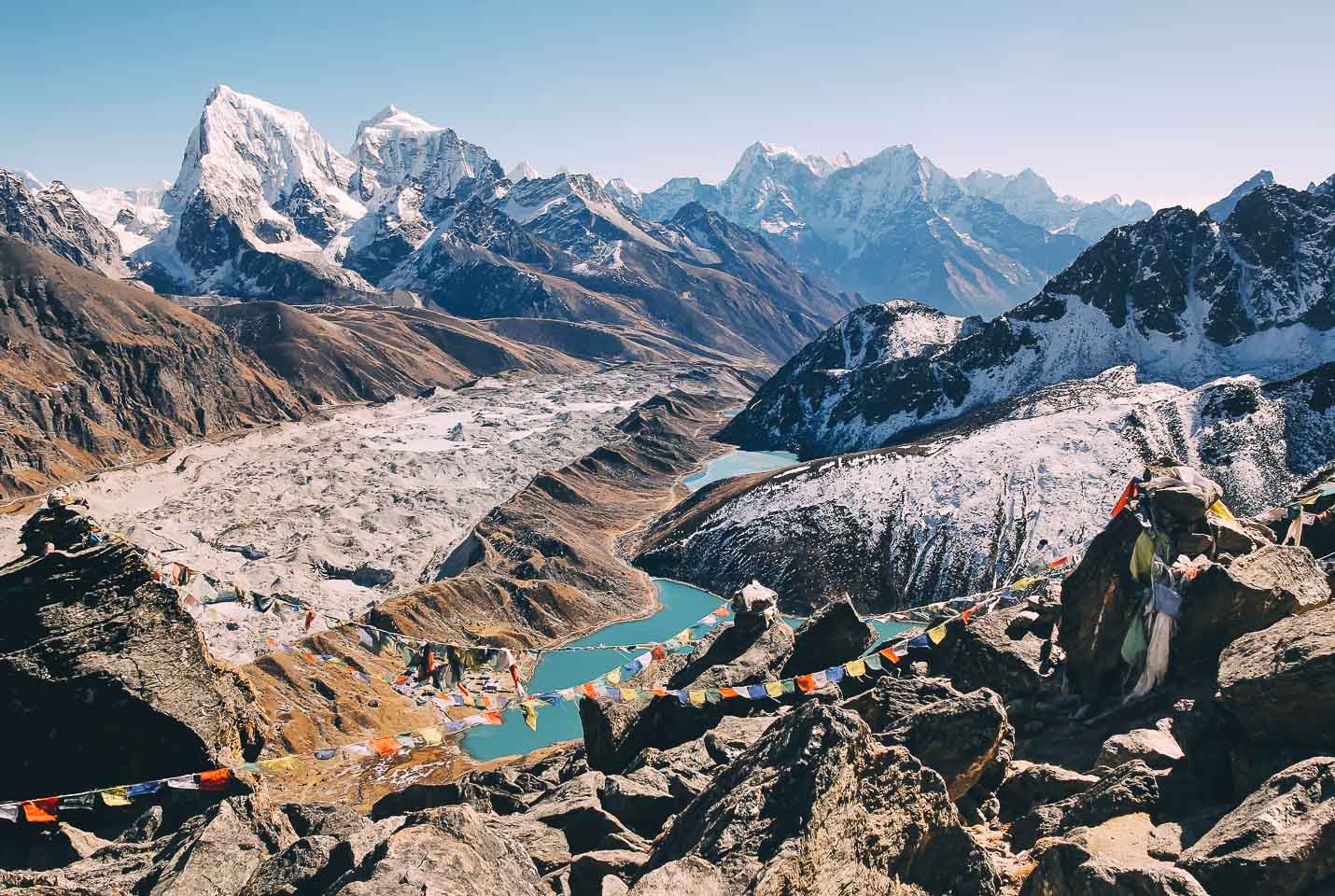 In any case, we have a superb view of the Tibetan border summits, such as Cheo (6,812 m), Nemjung (7,140 m) and Himlung (7,126 m), as well as on the Kang Guru (7,010 m) , Gyaji Kang (7,036 m) and even Annapurna II (7,937 m).