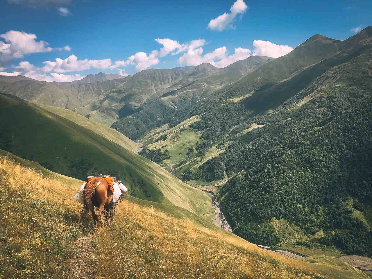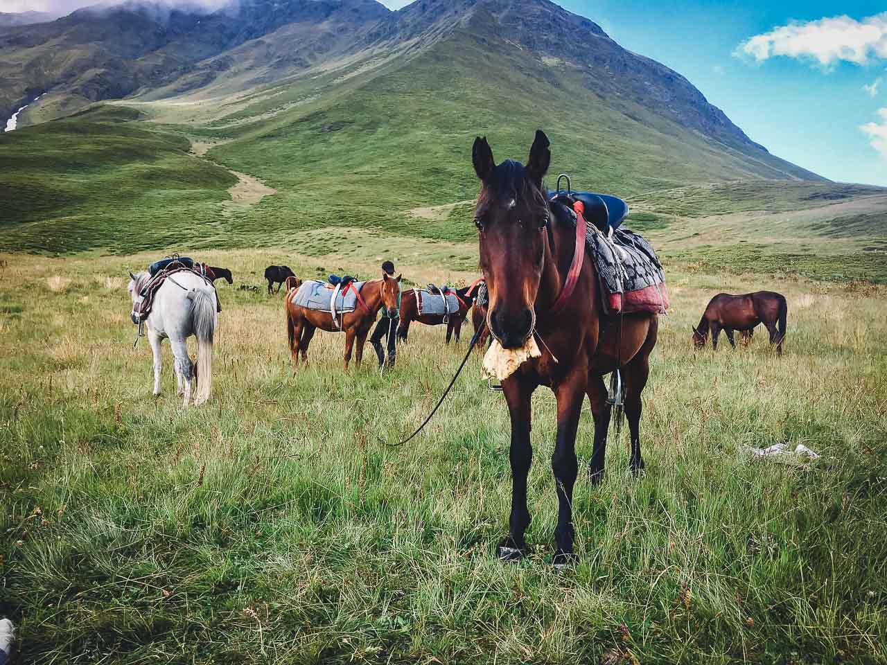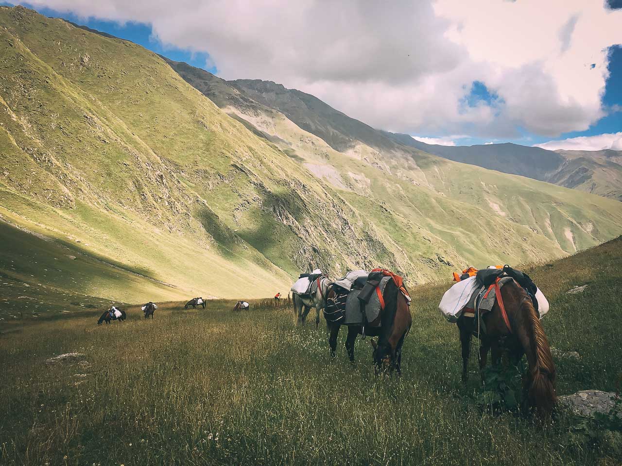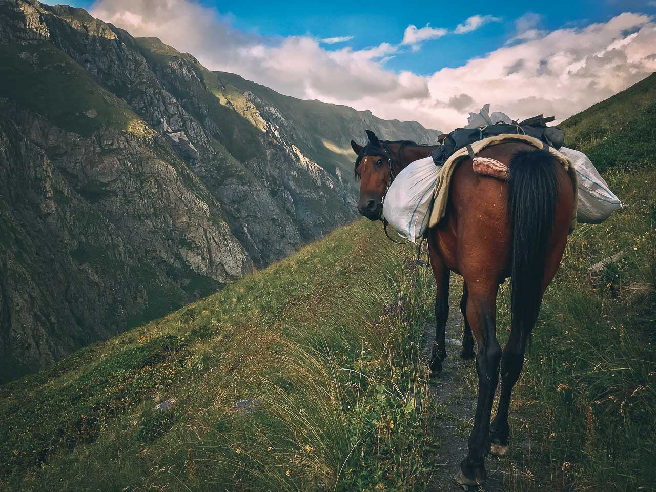 • At Laliskhuri, we will give you 2 waterproof bags in which you should arrange your stuff. You can leave the rest of your less important luggage there. The weight should also be reasonable, as the horses will be carrying all the stuff.