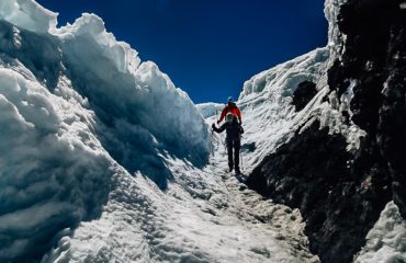 A few kilometres of the track give access to the hut of the Guardaparques. We then cross the forest and go up the fields of lava and slag to finally reach the edge of the crater. We take foot on the glacier and we go for a crossing of more than four kilometres. We get on the opposite bank and set up camp.